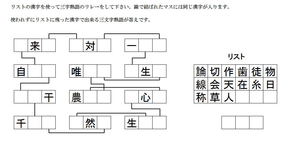 自作のパズル等を公開。 Webや電子媒体上で複雑な操作無しで解けるようシンプルにしております。 手軽に脳トレ、認知症予防をして頂ければ。