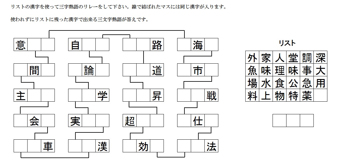 自作のパズル等を公開。 Webや電子媒体上で複雑な操作無しで解けるようシンプルにしております。 手軽に脳トレ、認知症予防をして頂ければ。