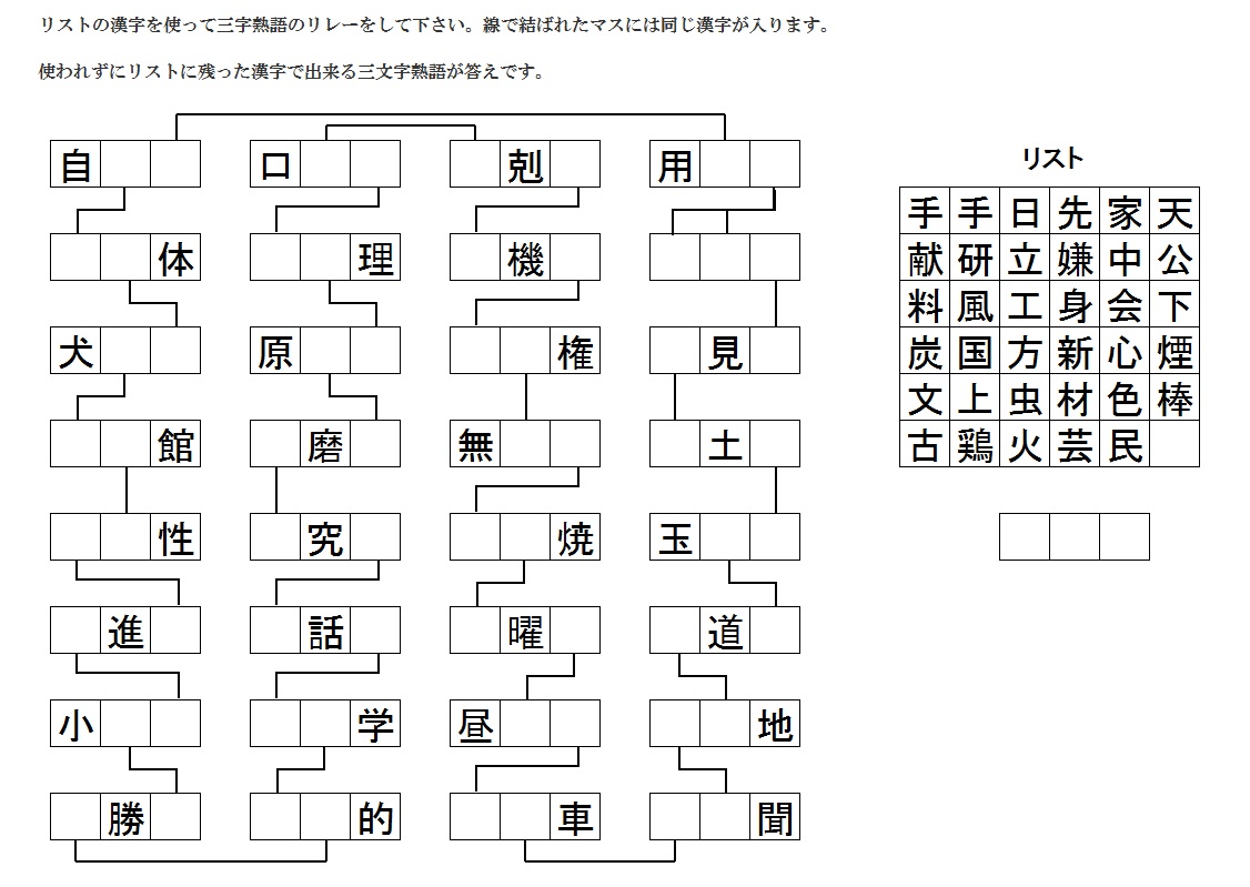 自作のパズル等を公開。 Webや電子媒体上で複雑な操作無しで解けるようシンプルにしております。 手軽に脳トレ、認知症予防をして頂ければ。