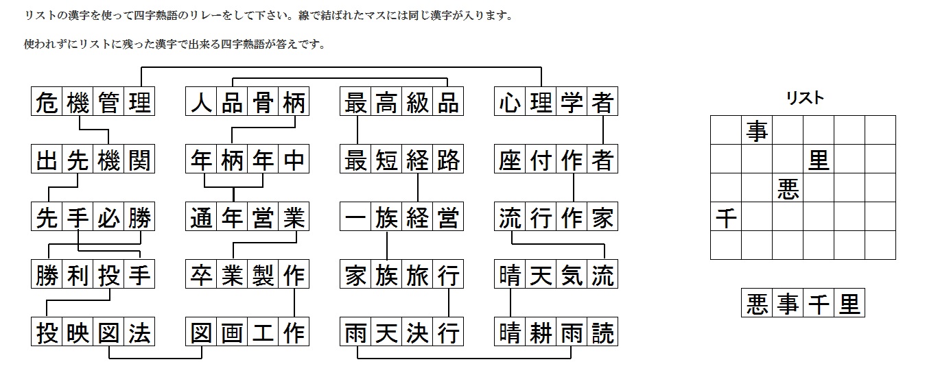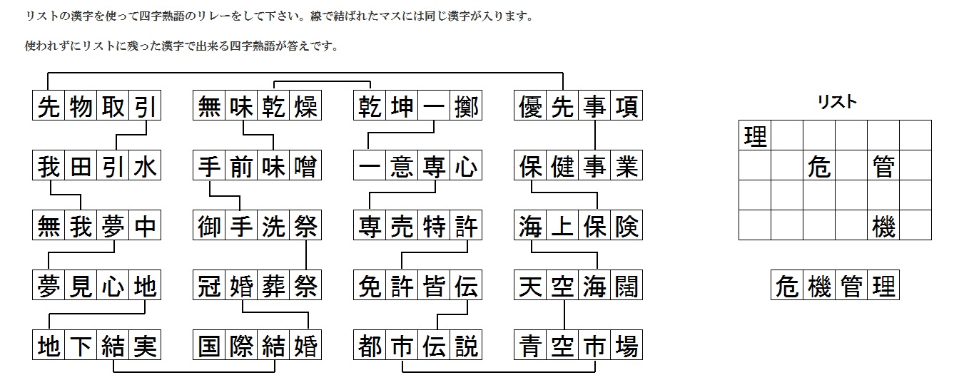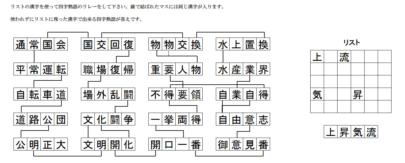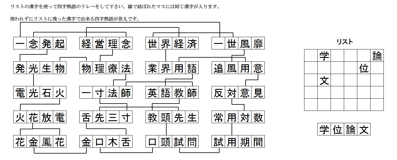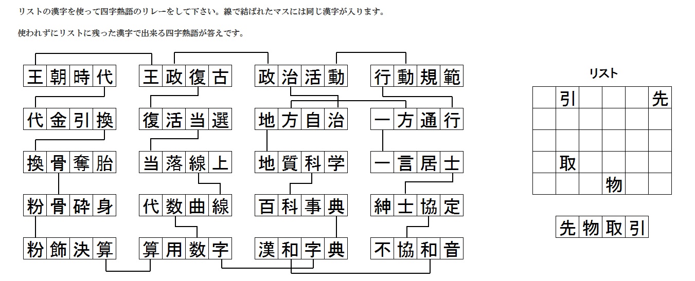 四文字熟語リレー解答