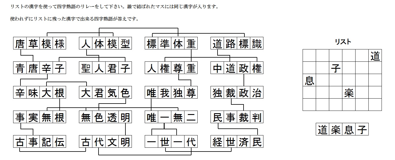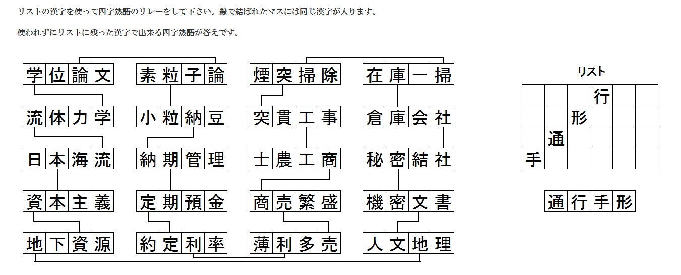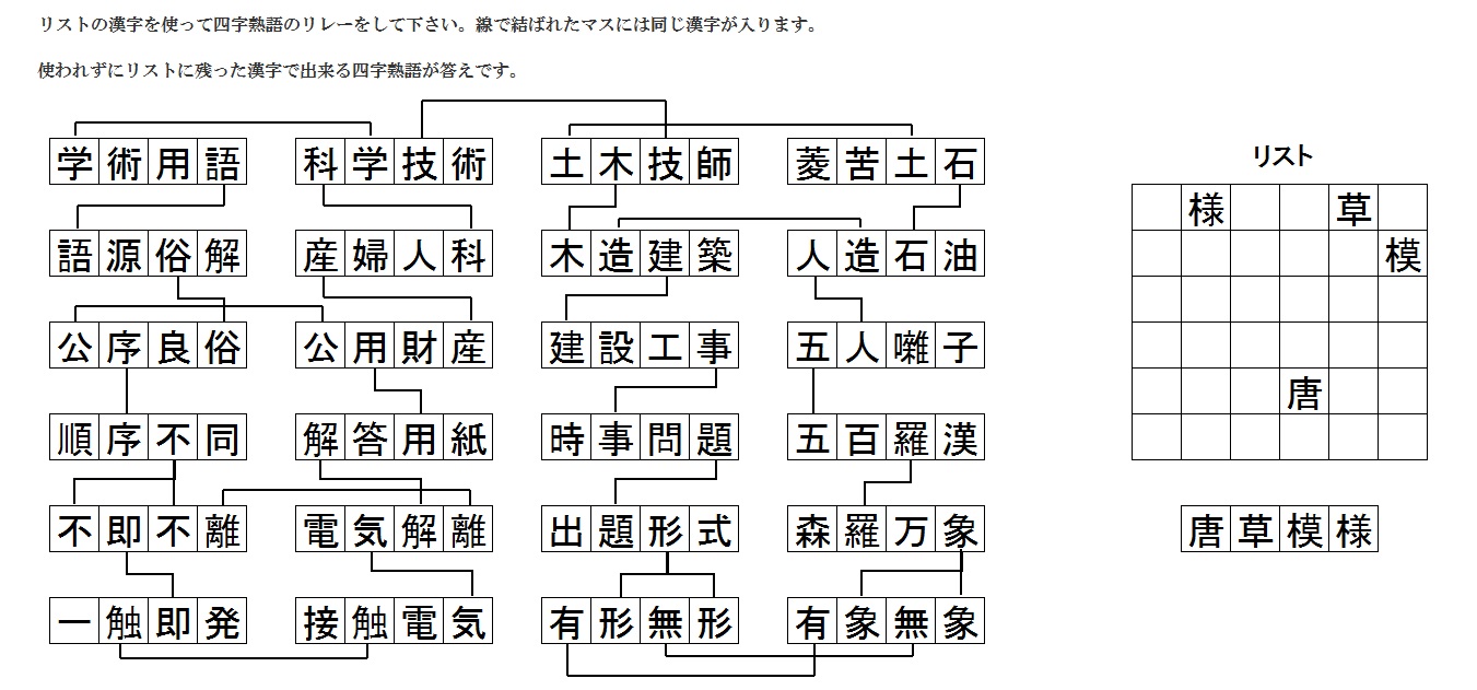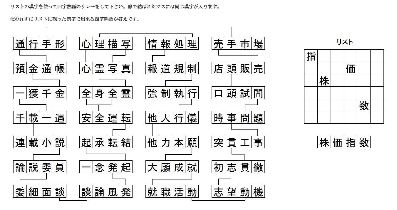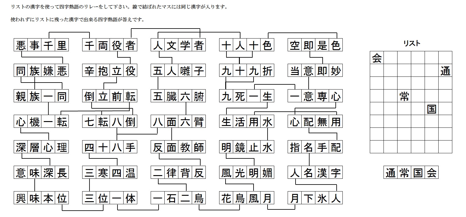 四文字熟語リレー解答