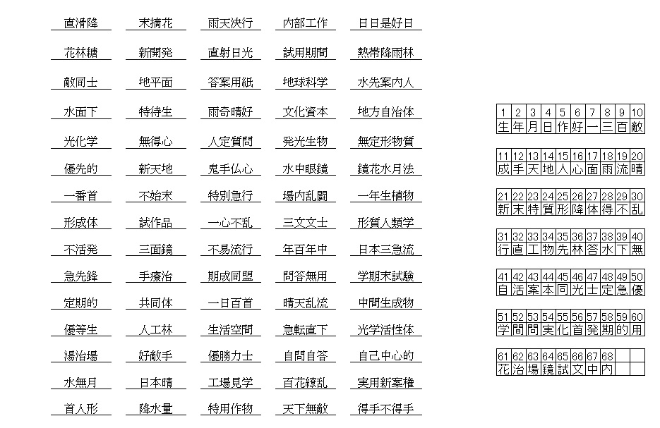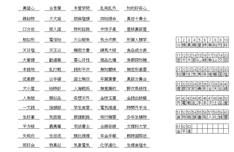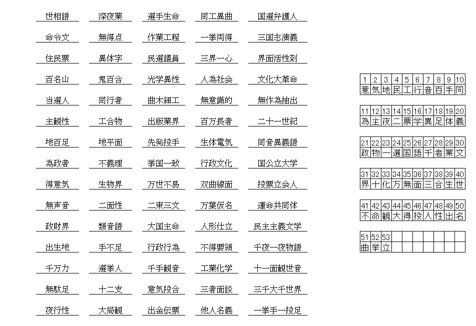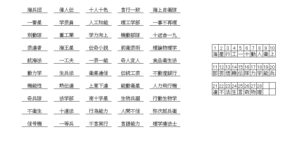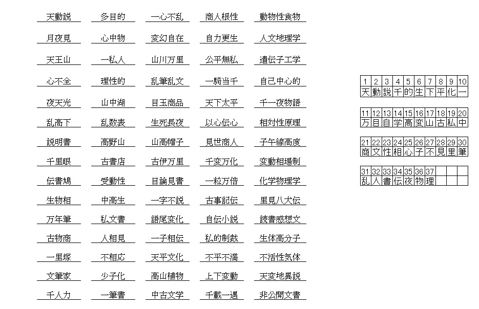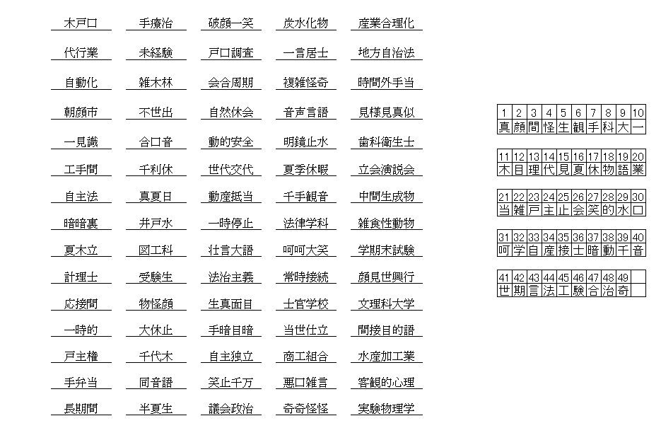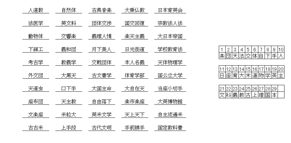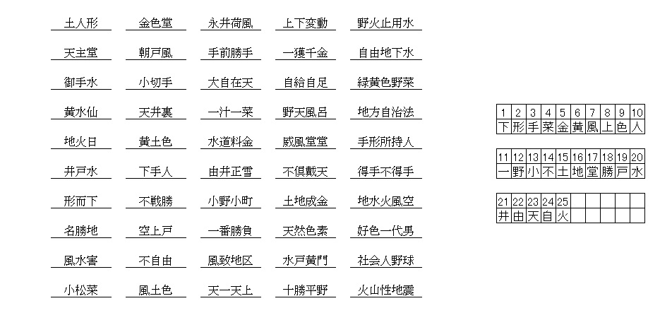 漢字抜け熟語解答